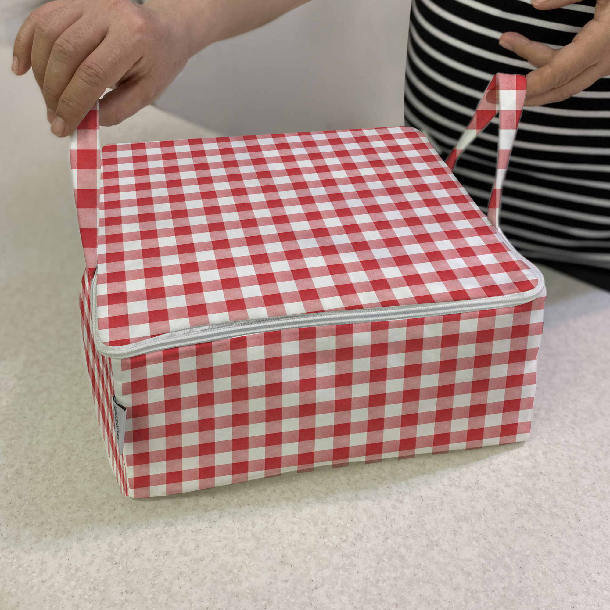 رویه مخمل، آسترکشی شده، دسته دار، زیپ سرتاسر، ابعاد 30 در 30 با ارتفاع 15