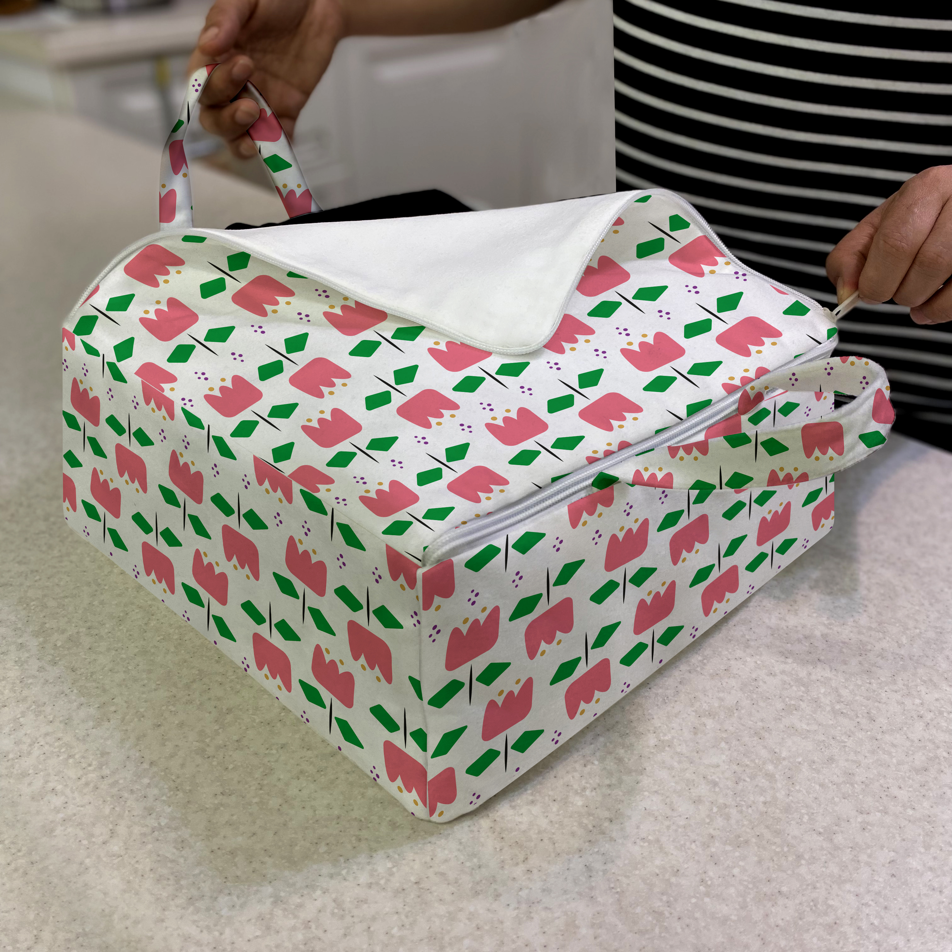 رویه مخمل، آسترکشی شده، دسته دار، زیپ سرتاسر، ابعاد 30 در 30 با ارتفاع 15